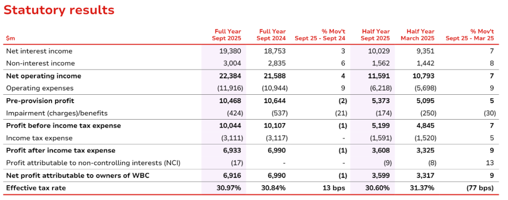 Westpac Banking Corp (ASX:WBC) is trading down 0.6% after releasing its FY25 financial result, keeping in mind the bank has a 30 September financial year end.